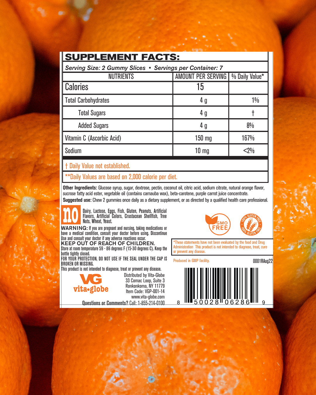 Each serving (2 gummies) provides 150 mg of Vitamin C (as ascorbic acid) in an easy-to-enjoy gummy format. Formulated with natural orange flavor and these gummies offer a convenient way to incorporate Vitamin C into your daily routine.